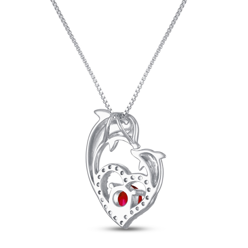 Have a question about Lab-Created Ruby/White Lab-Created Sapphire Dolphins Necklace Sterling Silver 18"?
