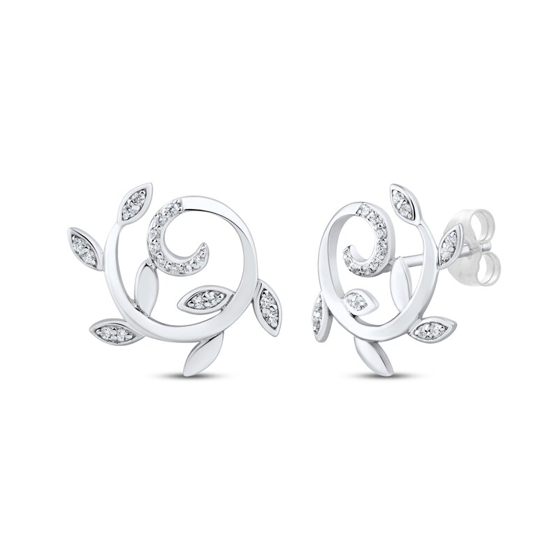 Have a question about Round-Cut Diamond Leaf & Vine Swirl Stud Earrings 1/10 ct tw Sterling Silver?